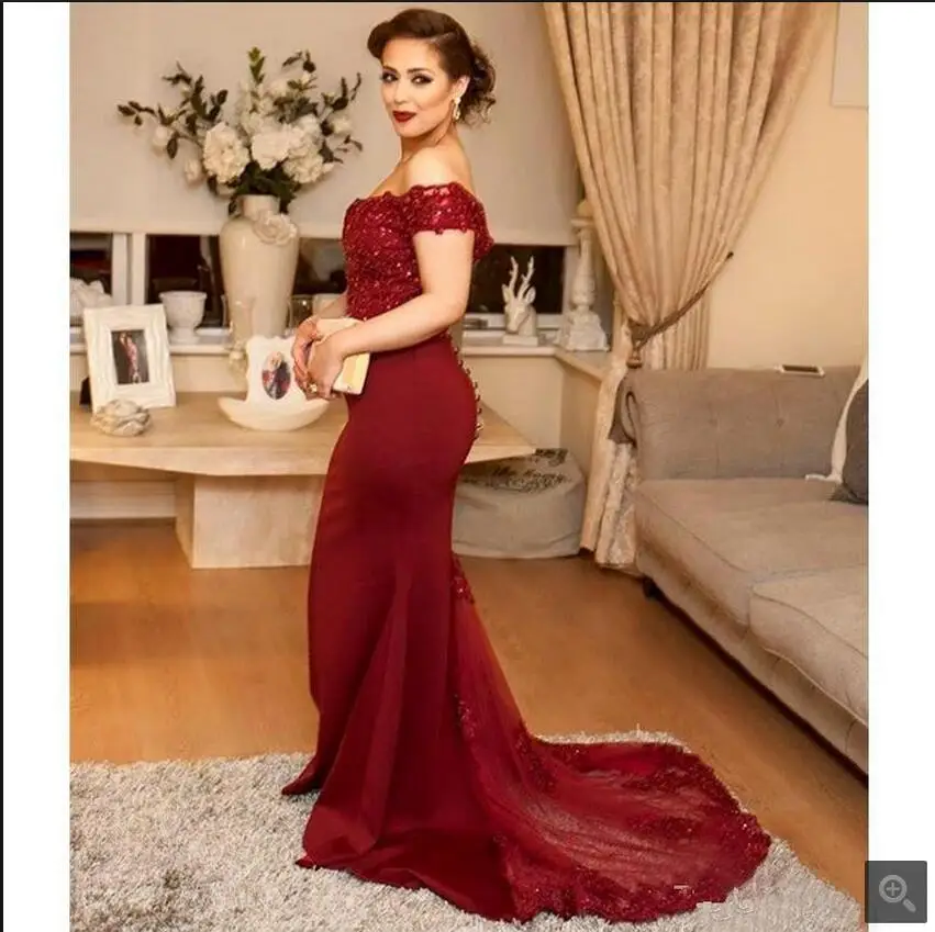 ^Cheap Mermaid Lace appliques satin Evening Dresses 2017 beaded V-Neck off the shoulder sheer back sexy evening gowns best selling Best Price