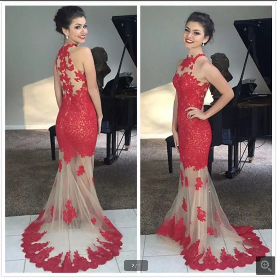 ^Cheap See Through sexy Mermaid Prom Dresses 2016 Red Appliques Formal Dresses prom gowns best selling Vestido De Festa Online