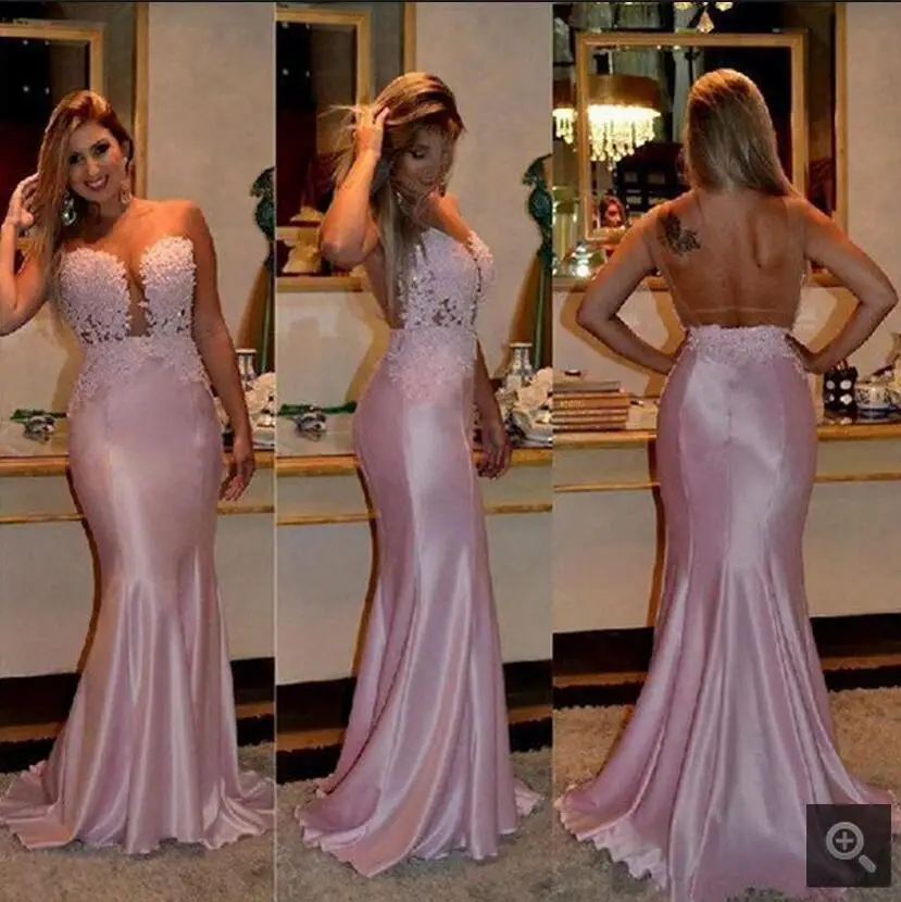 Wonderfull vestido de festa fashion pink lace appliques mermaid evening dress backless sexy sleeveless beading evening gowns best selling Who Sells The Cheapest Online