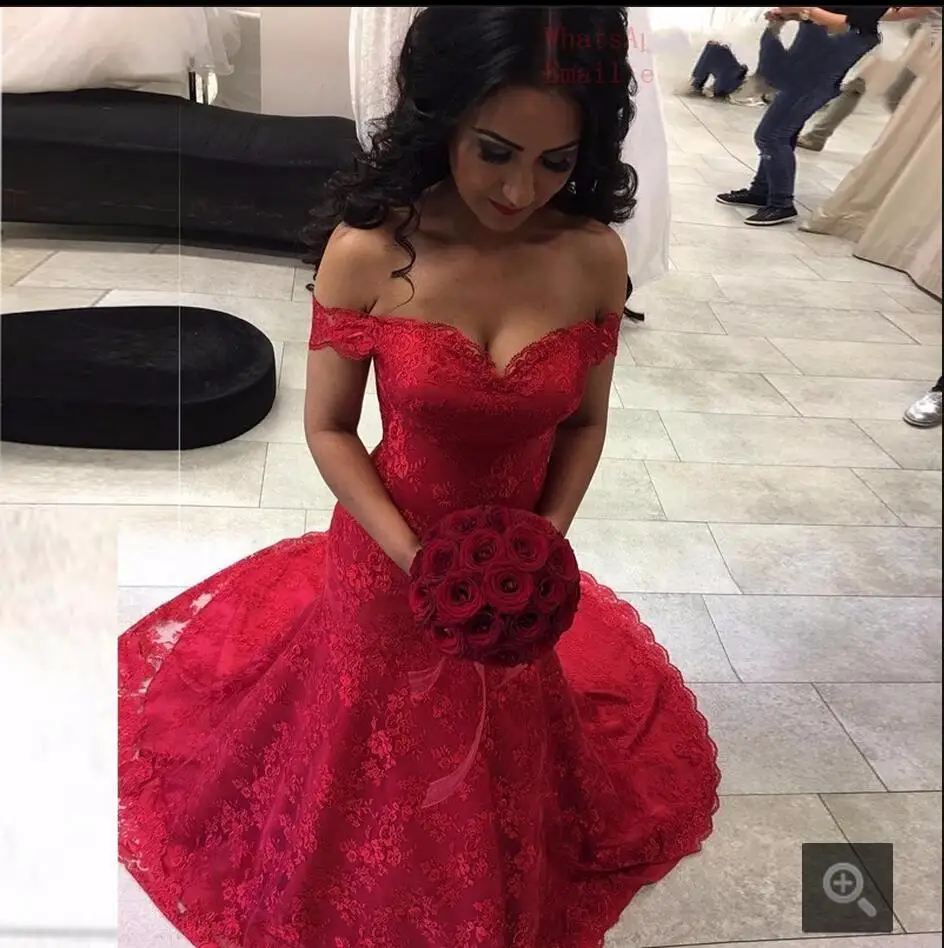 #^Special Price 2016 new fashion mermaid red lace prom dress off the shoulder v neck court train prom gowns best selling prom dresses Buying