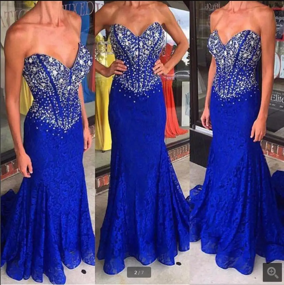 #Special Offers 2016 fashion royal blue mermaid lace prom dress strapless heavily beading formal long prom gowns best selling prom dresses Compare Prices